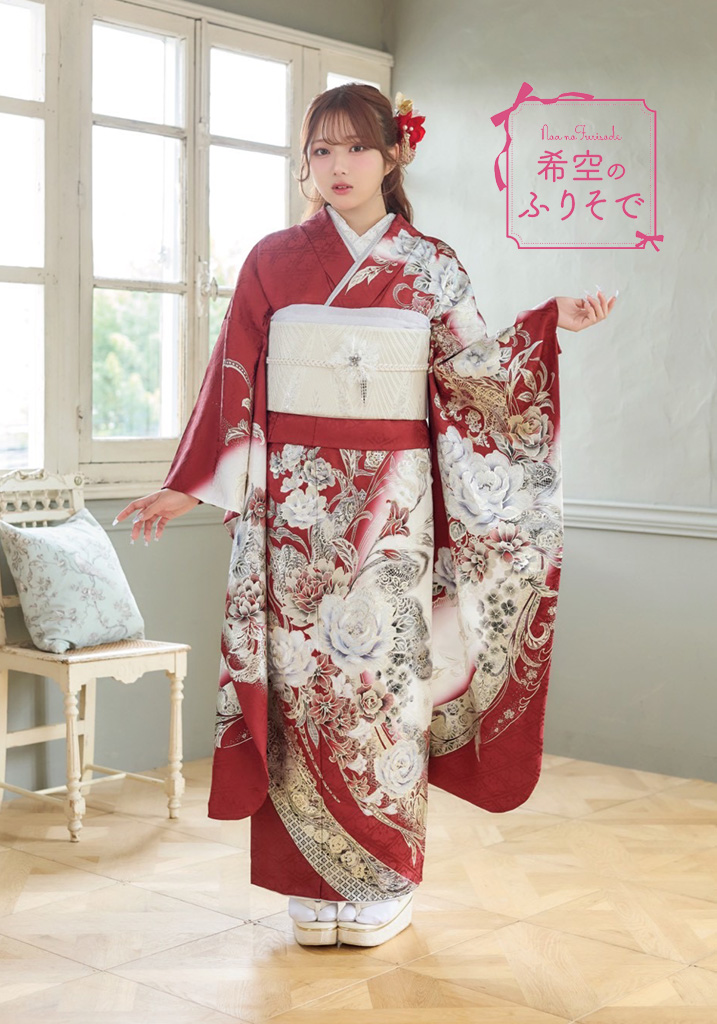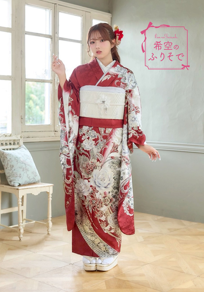 赤い地色に金彩仕上げでクールな印象の振袖。